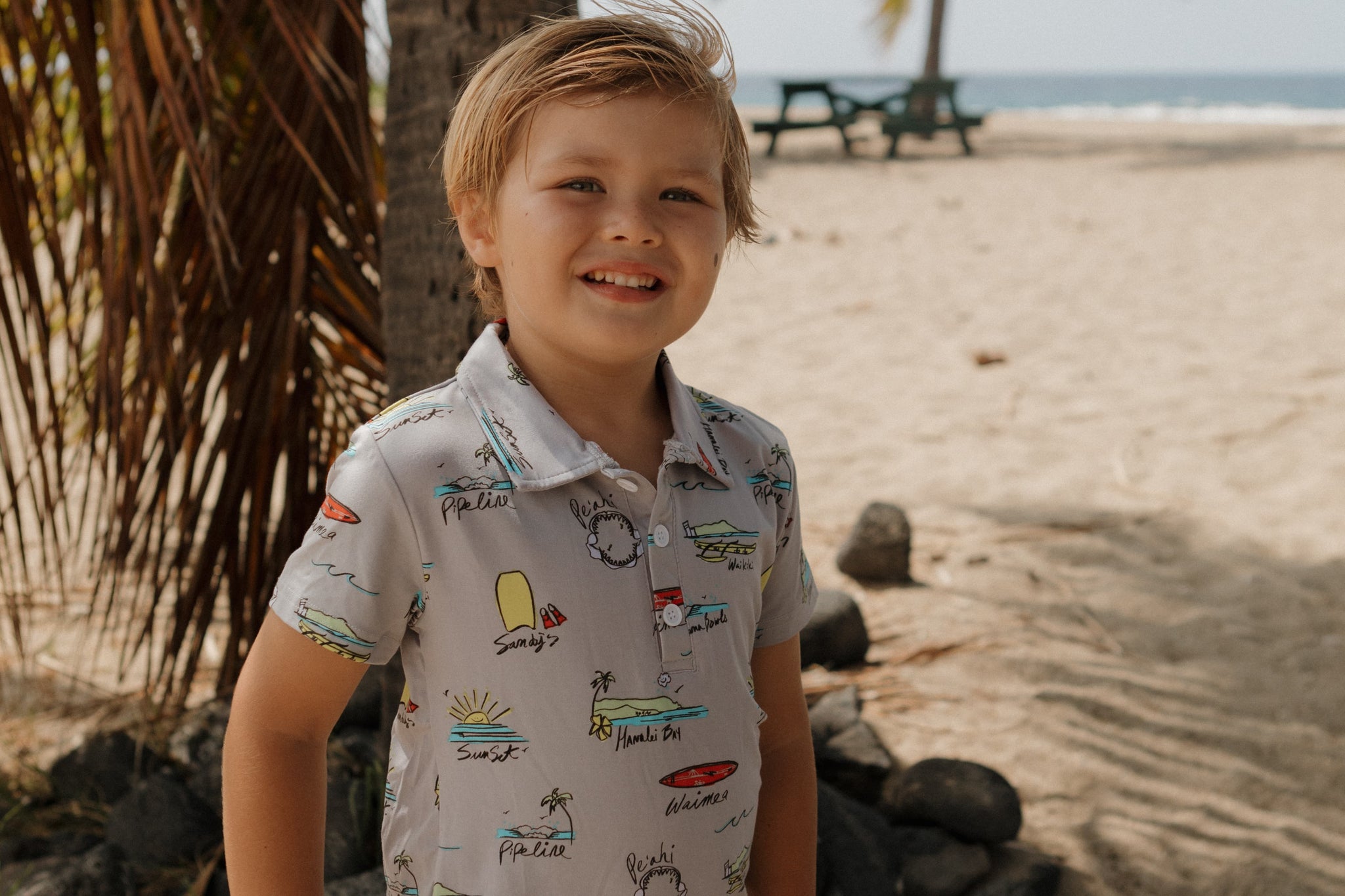 Hawai’i is known for its bright, tropical colors and bold, playful patterns. These elements are incorporated into our boys’ summer fashion to bring a touch of the islands to their everyday wear. Whether it’s a splash of ocean blue or a pattern inspired by surfing, these designs help bring the spirit of Hawai’i to your child’s wardrobe.