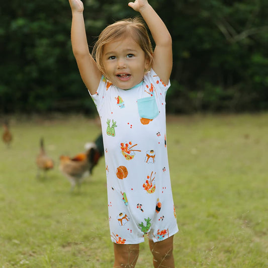 Island Mixed Plate Girls Shortie Bamboo Romper