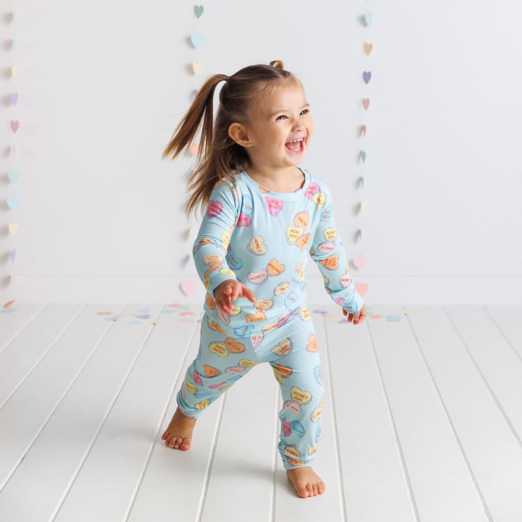 As your little ones continue to grow, they can still enjoy the buttery-softness of our footies and coveralls with our two-piece pajama set. Dress them in a silky soft, stretchy long sleeve top and pants so they can continue to wrap themselves up in aloha as they transition into toddler sizes.