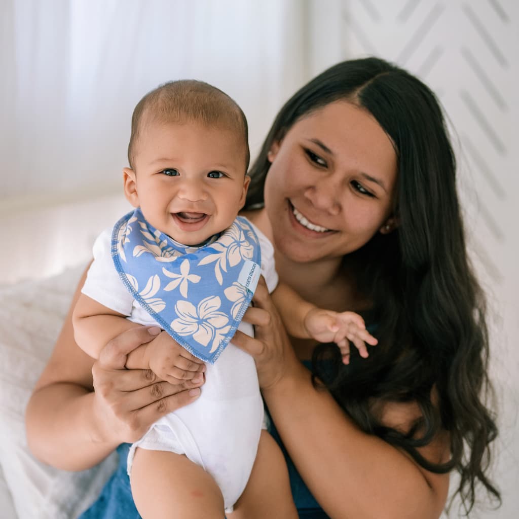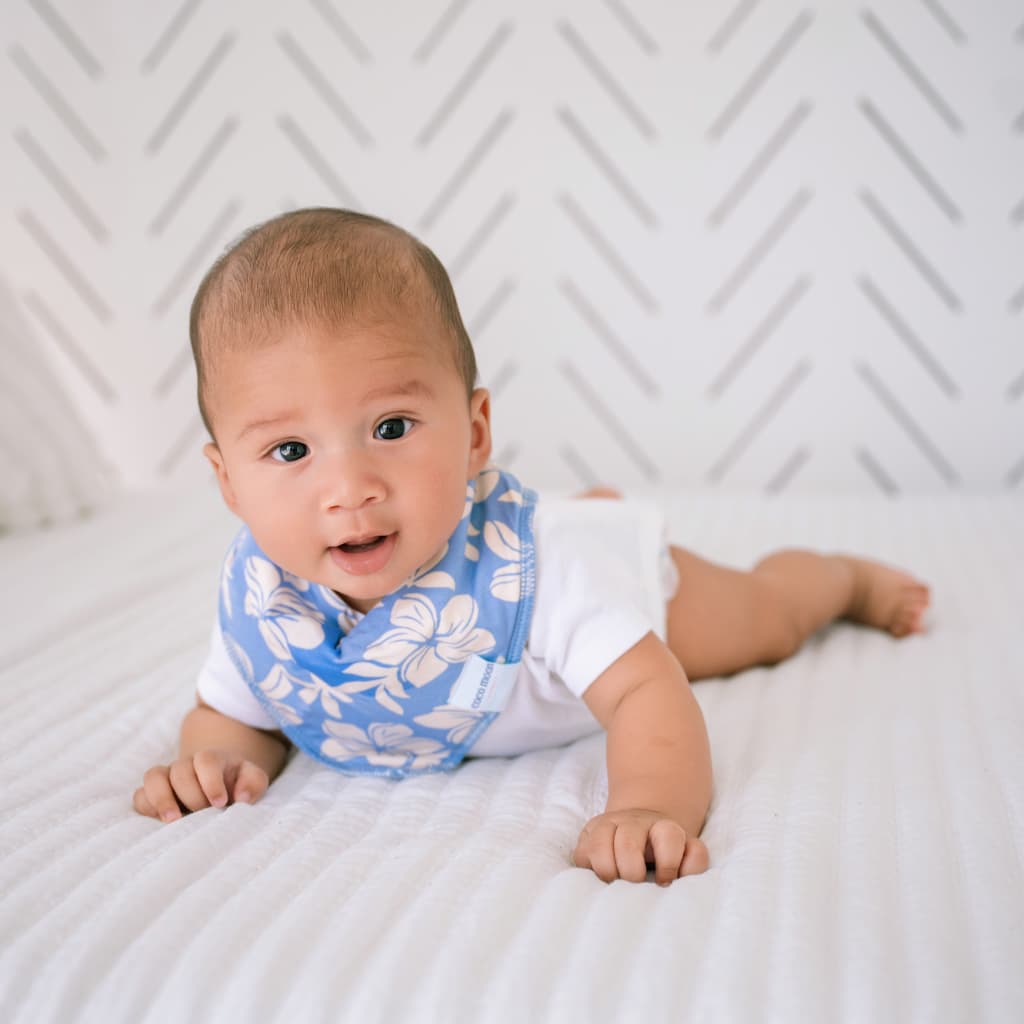 Our Bandana-style Bibs are as functional as they are adorable! They're made out of our silky soft fabric with an added layer of highly absorbent fleece on the back. The skin around your baby's mouth can be easily irritated, so we've designed these to be soft and gentle enough for baby's delicate skin, and strong enough to keep baby dry. The adjustable, nickel-free snaps allow for ultimate comfort as your baby continues to grow.