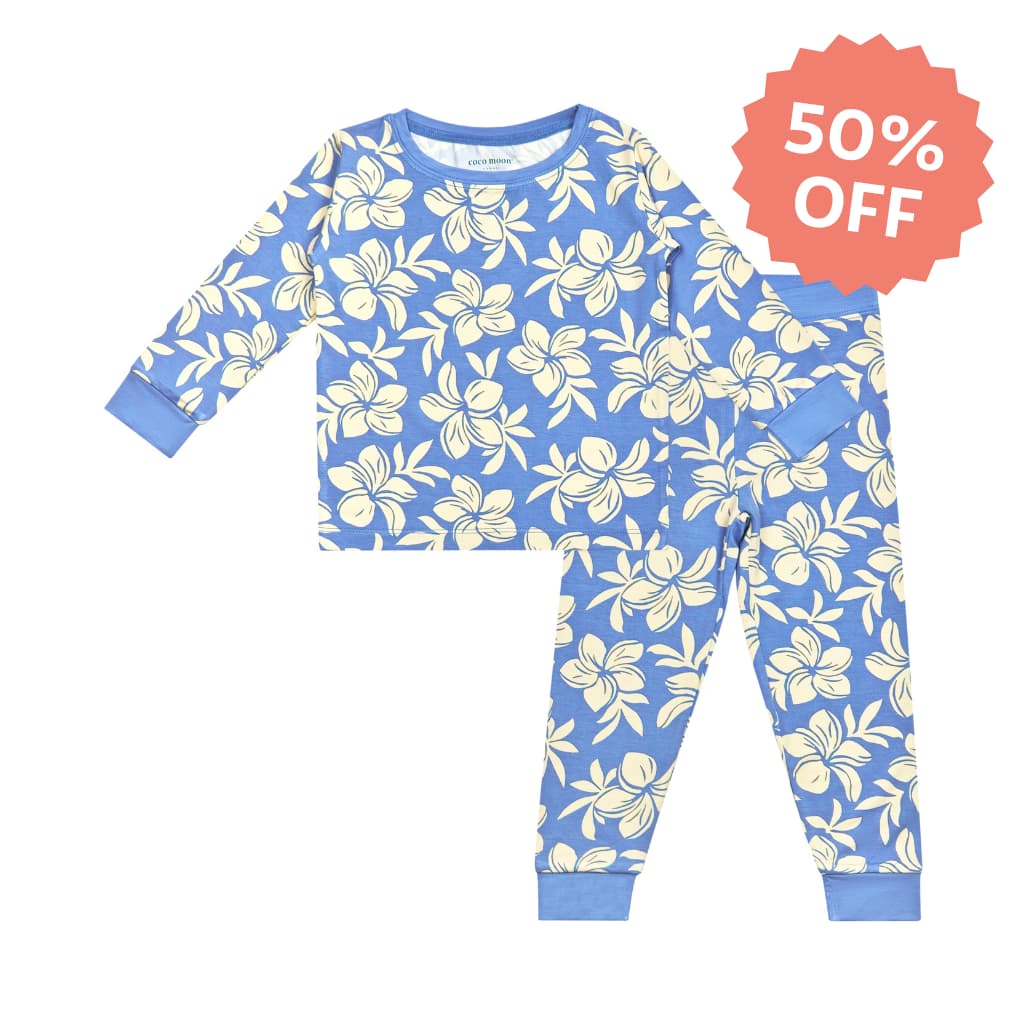 As your little ones continue to grow, they can still enjoy the buttery-softness of our footies and coveralls with our two-piece pajama set. Dress them in a silky soft, stretchy long sleeve top and pants so they can continue to wrap themselves up in aloha as they transition into toddler sizes.