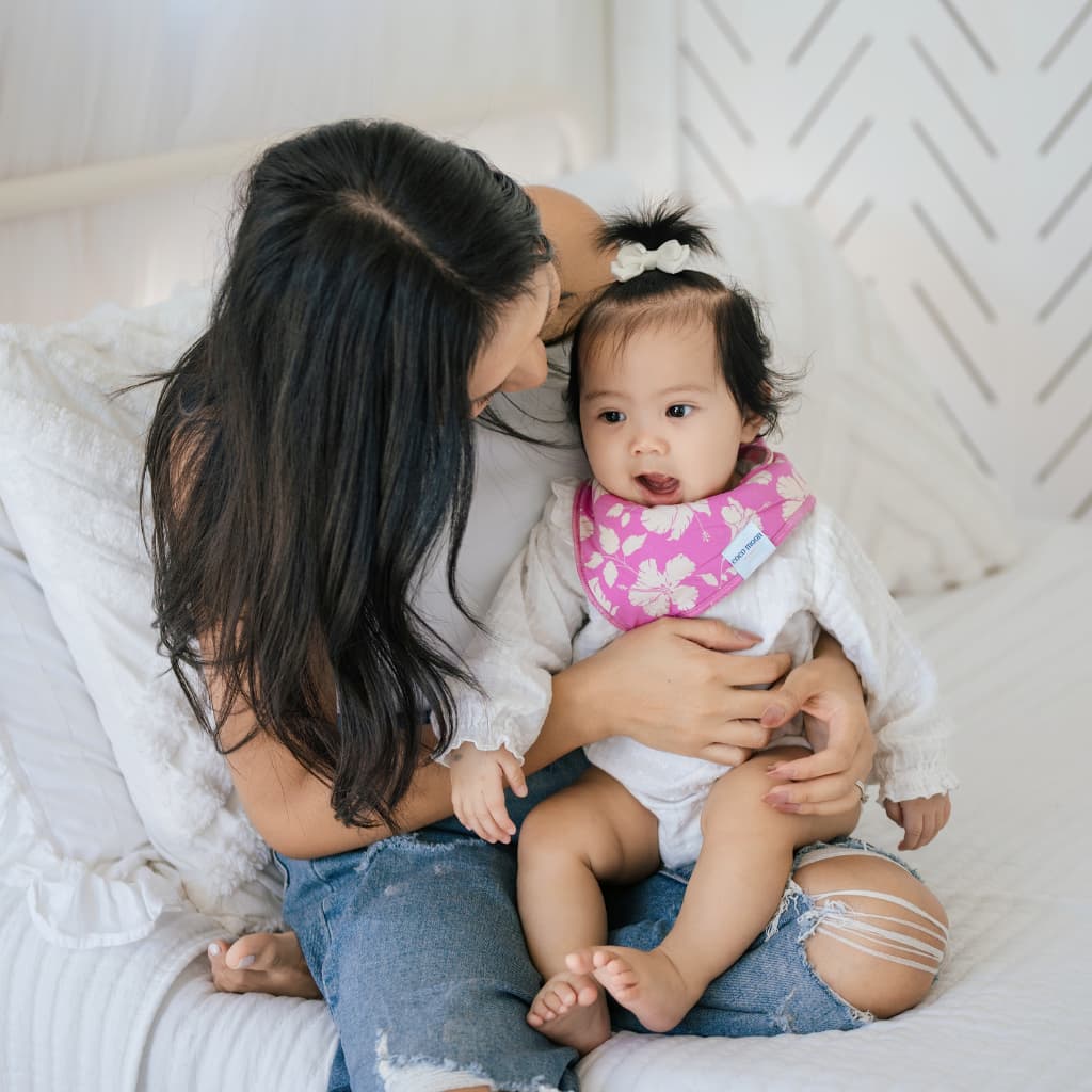Our Bandana-style Bibs are as functional as they are adorable! They're made out of our silky soft fabric with an added layer of highly absorbent fleece on the back. The skin around your baby's mouth can be easily irritated, so we've designed these to be soft and gentle enough for baby's delicate skin, and strong enough to keep baby dry. The adjustable, nickel-free snaps allow for ultimate comfort as your baby continues to grow.
