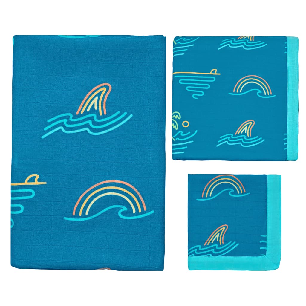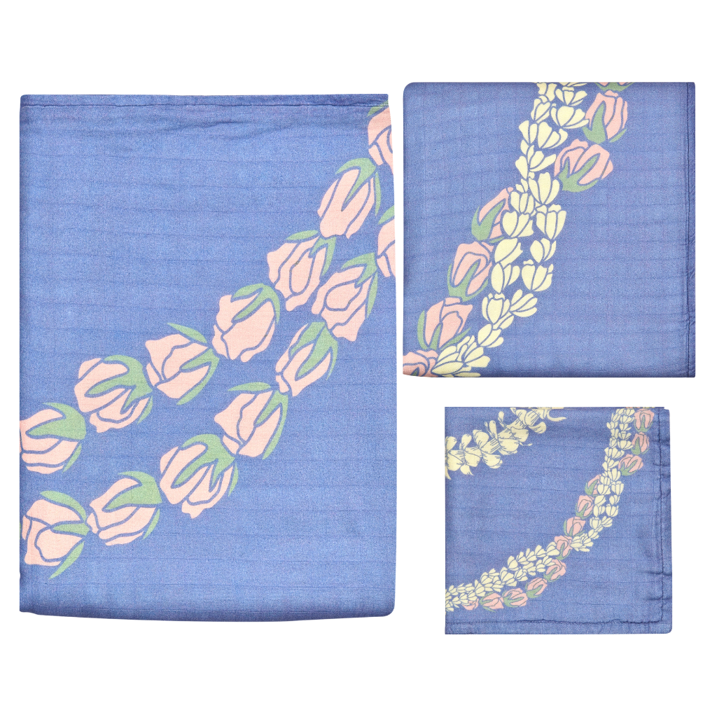 Give baby the gift of 'ekolu (three) buttery soft blankets for every occasion. This baby bundle set includes a baby swaddle blanket, muslin baby quilt, and security blanket in matching print. And bonus! Save 10% when you buy as a bundle.