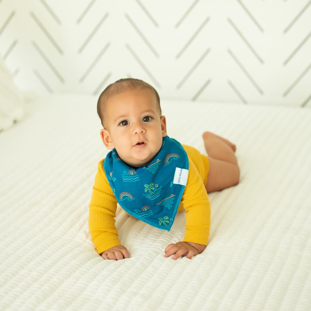 Our Bandana-style Bibs are as functional as they are adorable! They're made out of our silky soft fabric with an added layer of highly absorbent fleece on the back. The skin around your baby's mouth can be easily irritated, so we've designed these to be soft and gentle enough for baby's delicate skin, and strong enough to keep baby dry. The adjustable, nickel-free snaps allow for ultimate comfort as your baby continues to grow.