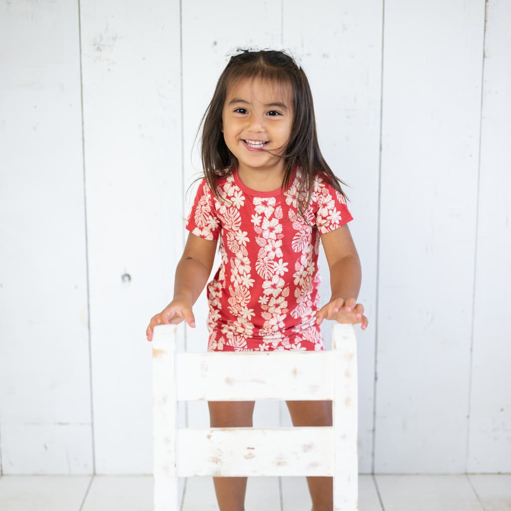 As your little ones continue to grow, they can still enjoy the buttery-softness of our footies and coveralls with our two-piece pajama set. Dress them in a silky soft, stretchy short sleeve top and shorts so they can continue to wrap themselves up in aloha as they transition into toddler sizes.